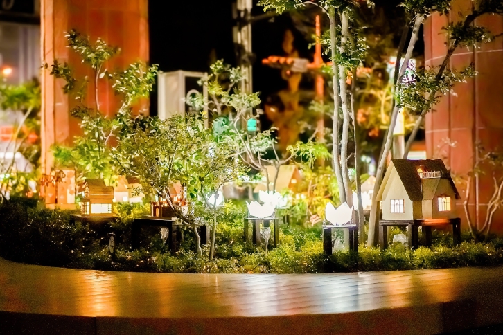 星が丘テラスウィンターイルミネーションと合わせたデザインとすることで、イルミネーションに一体感を持たせ、星ヶ丘エリアの冬を彩ります。