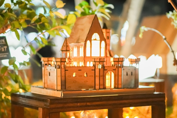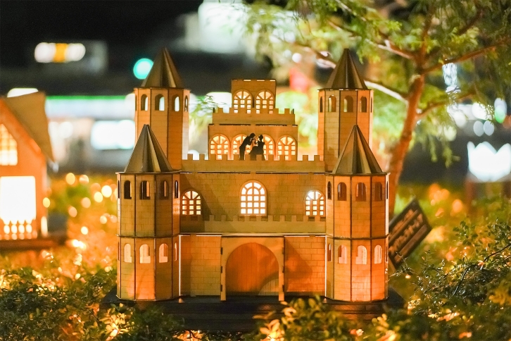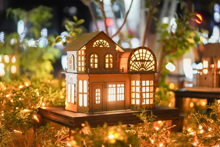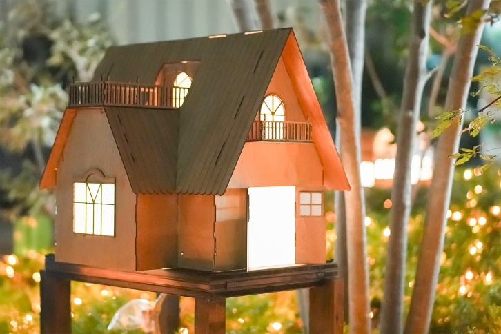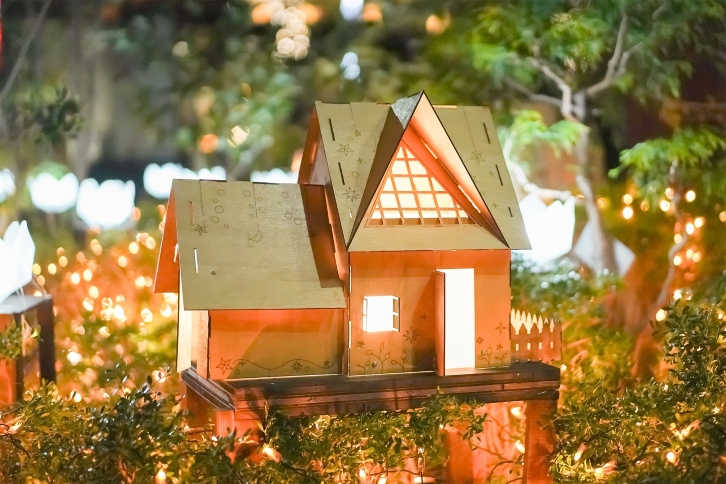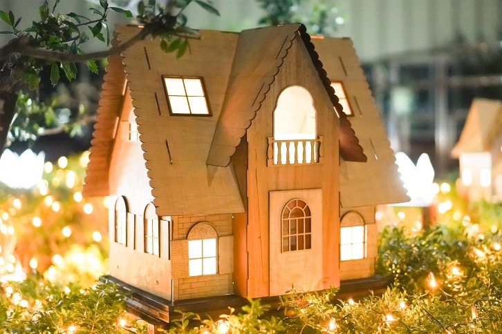 木製ハウス8個、花のイルミネーション10個を山下健研究室の4年生が制作しました。