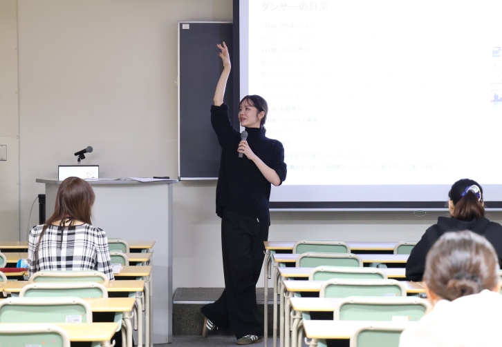 国際教養学科の専門教育科目で、バレエの本場ヨーロッパでソリストとして活躍した、米山実加氏を講師に迎え、特別講義「踊りに導かれてー日本・フランス・ドイツを通してー」を実施しました。
