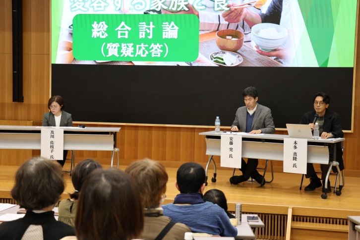 また、講演会の最後には事前に寄せられた質問内容や会場からの質問等についての質疑応答を行い、参加者からは「社会学や栄養学の視点から家族と食の変化について学ぶことができ、新たな気付きを多く得られました。」「自分の食事環境・食生活について改めて考えさせられるきっかけになりました。」などの感想が寄せられました。