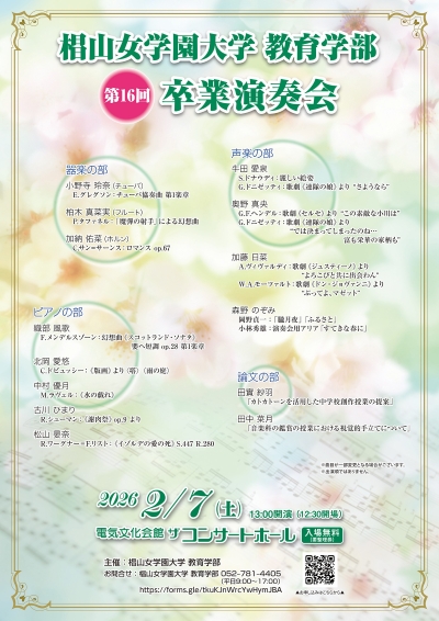 2/7(土)、教育学部 第16回 卒業演奏会を開催します