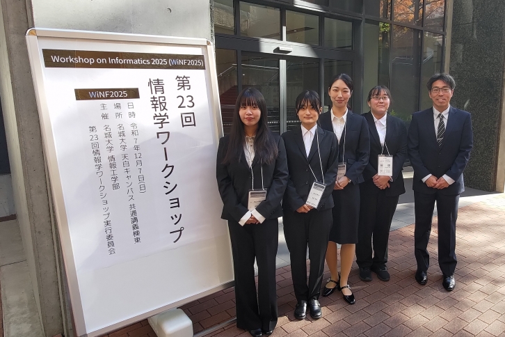 12月7日(日)、文化情報学部(現:情報社会学部)向直人教授の研究室の4年生4名が、名城大学で開催された「第23回情報学ワークショップ(WiNF2025)に参加し、それぞれの研究をポスター発表しました。