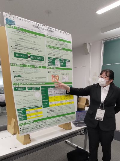 | 【研究テーマ】こまき巡回バス「こまくる」の乗降データの可視化と犯罪発生との地理的関係 【発 表 者】渡邉 のぞみ、向 直人 |