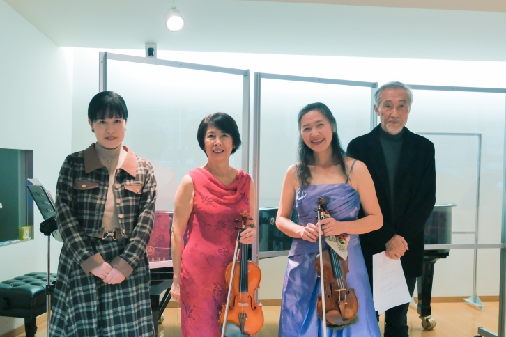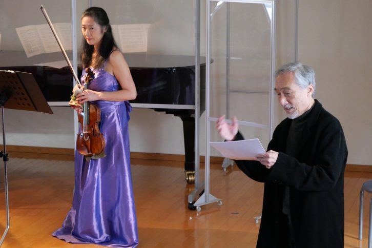 講師には、パリ国立高等音楽院を首席で卒業後、バニョレ音楽院で長きにわたり主任教授を務めた安田真理氏。東京音楽大学卒業後、ベルギー王立歌劇場管弦楽団に入団し、ヨーロッパ各地で活躍。現在は、名古屋バロックオーケストラのコンサートマスターを務める熊谷祥子氏。俳優として劇団活動の傍ら、新たな表現を追求し、朗読と音楽を交えたコラボレーションも行っている榊原忠美氏の3名を講師に迎え、演奏と朗読が行われました。