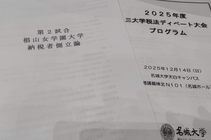 三大学税法ディベート大会は、椙山女学園大学 現代マネジメント学科、立命館大学 法学部、名城大学 法学部の三大学の学生が租税法の判例をもとにディベートを行うもので、20年以上続く歴史ある大会です。
