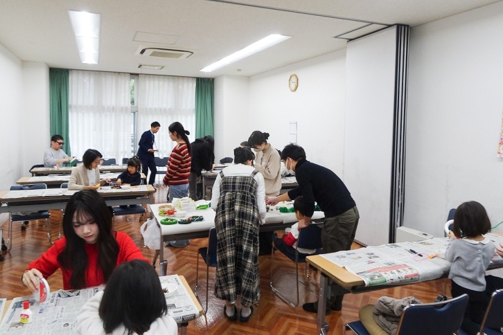 12月14日(日)、“まちづくり”を学ぶ今村洋一教授のゼミの3年生が、星が丘キャンパス隣のUR団地の1つ、アーバンラフレ虹ヶ丘西の集会所にて、幼稚園・保育園児および小学生を対象としたクリスマスリースづくりワークショップを開催しました。