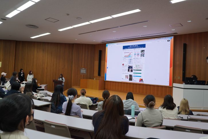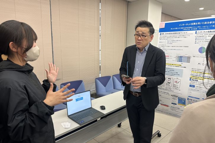 この「基礎演習」では、身近なテーマから社会の課題を見つけ、解決に向けたアイデアを相手に伝わる形にまとめる力を養うことを目的に、株式会社デンソーの講師を招き、アイデアを生み出すトレーニングを重ねてきました。学生はグループに分かれ、「若者の政治参加」「デジタルディバイドの解消」「災害情報の効果的な伝達」「オーバーツーリズムへの有効な対策」「労働力不足への有効な対策」の5つの課題から1つを選び、アイデアを検討。教員による「調べ方・まとめ方」の講義を踏まえ、根拠や対象を明確にしながら提案を練り上げました。