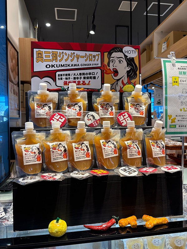 このシロップは、炭酸水や紅茶、牛乳に合わせるだけでなく、豚肉料理の調味料やノンアルコールビールに加えて楽しむこともできます。甘さ控えめで、唐辛子と生姜の風味がしっかり効いているため、少量で体が温まるのも特徴です。素材はすべて国産で、生姜・唐辛子・柚子は農薬を使わずに栽培された東栄町産、砂糖は国産きび砂糖を使用。さらに、ガラス瓶ではなくスパウトパウチを採用し、品質とコストパフォーマンスを両立しました。