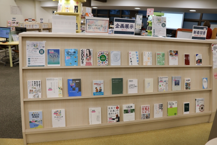 なお、会場となった中央図書館では、今回の寄付や社会貢献のテーマ関連図書の企画展示も、合わせて1月9日まで行っています。ぜひ、お立ち寄りください。