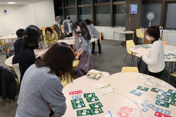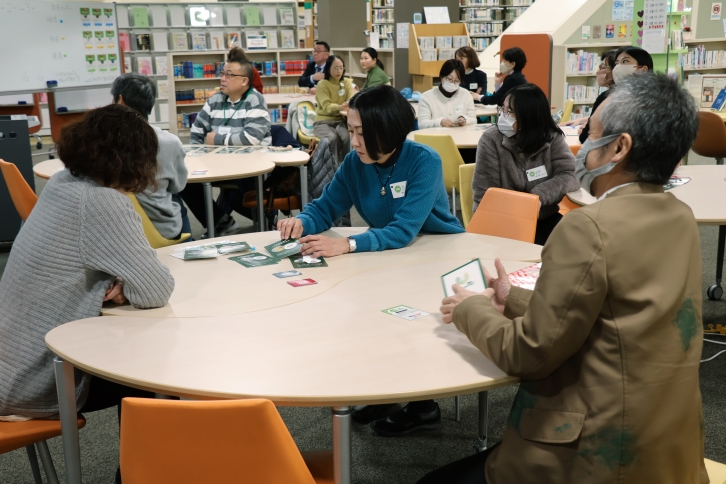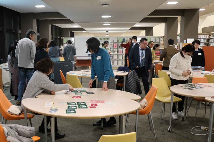 12月17日(水)、星が丘キャンパス中央図書館1階のラーニングコモンズで、歳末恒例の寄付活動啓発キャンペーンの一環として、お金の使い方で社会をより良くする選択を探るカードゲームの体験会が開催され、学内外から22人が参加しました。