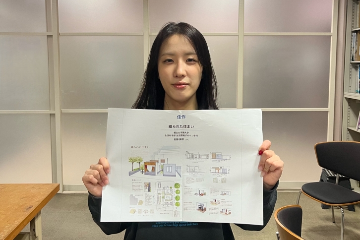 受賞にあたり、「この度は、初めての受賞ということで大変光栄に思っております。日々の設計課題に向き合う中で自分なりに考えてきたことが、このような形で評価していただけたことを励みに感じています。今回の受賞をきっかけに、これからも人の暮らしや関係性を意識しながら建築に取り組んでいきたいと思います」と佐藤さんは、語りました。