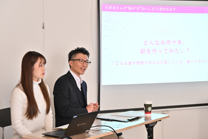 他にも、ゴマセサミンや豊富なビタミンD・Eを含む『ごまたまご』のように飼料の中身を工夫することで畜産物の栄養価やおいしさを高めることができる事例や、消費者の意見から生臭さを抑えた『恵比寿ぶり』の誕生秘話が説明されました。
