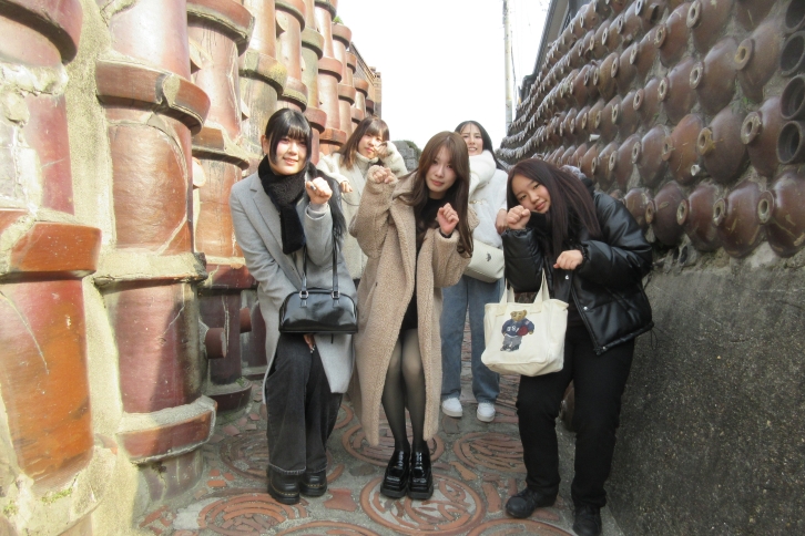学生たちは常滑市陶磁器会館で、とこなめ観光協会より常滑市の観光の状況や課題などについて説明を受け、その後、常滑やきもの散歩道を散策して常滑焼に関した観光について調査しました。