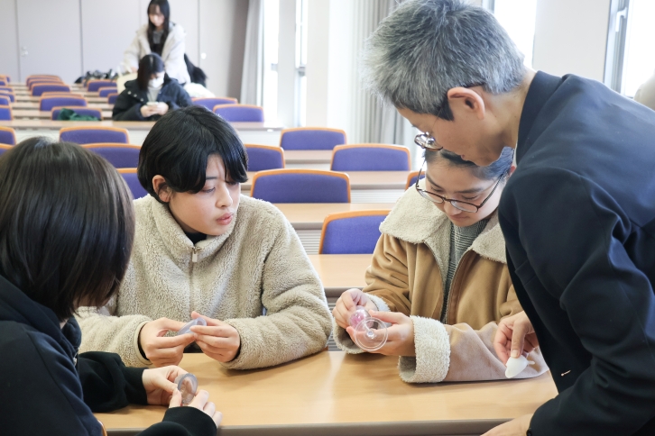 1月9日(金)、人間共生学科・心理学科の専門教育科目「ジェンダー・セクシュアリティ論B」(担当:藤原直子教授)において、ゴムノイナキ株式会社の近藤絵美氏、小塚希碧氏をゲストスピーカーに招き、「フェムテック」や第三の生理用品として注目を集める「月経カップ」について学びました。