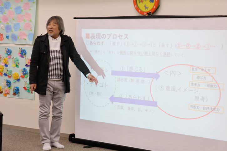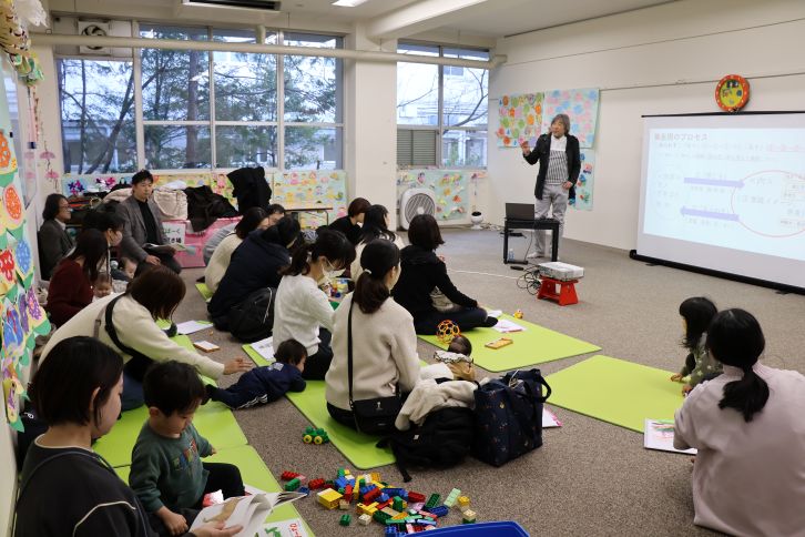 1月21日(水)、すぎぱーくで1月の子育て講座を開催しました。今回は、椙山女学園大学教育学部の磯部錦司教授より「ヒトはなぜ表現するのか?子どもは「表現すること」でどのような「知」を育むのか?」をテーマにお話がありました。