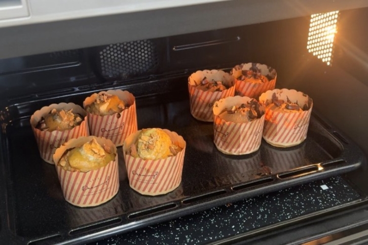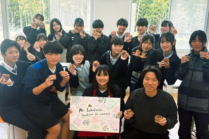 高校生たちは、班ごとに協力しながら生地作りやトッピングを行い、楽しく実習に取り組み、焼き上がったマフィンを手にした際には、「おいしそう!」と歓声が上がりました。