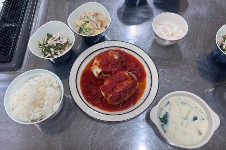 また、合宿日がクリスマスであることも意識し、24日にはクリスマスカラーである赤を意識した「イタリアンハンバーグ」。25日は、鶏むね肉の唐揚げにタルタルソースを添え、より多くのたんぱく質を摂取できるように工夫した『チキン南蛮』を提供しました。
