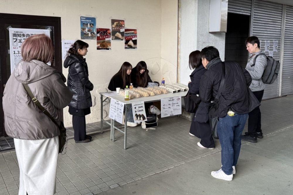 このイベントは、無人駅となった内海駅周辺をもう一度にぎやかな場所にしようと、地域の団体が企画した取り組みです。生活環境デザイン学科の村上心教授と研究室の学生たちは、企画・運営面で深く協力しました。