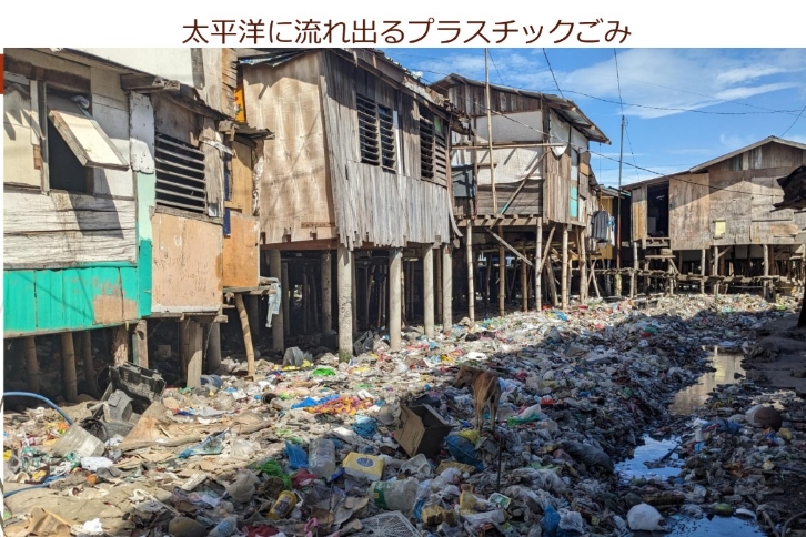 授業は二部構成で行われ、冒頭では現地NGO団体の代表・池頭氏より、セブ島を取り巻く現状について報告がありました。セブ島は、美しいビーチリゾートとして知られる一方、一般ごみの焼却が法律で禁止されていることに加え、多くのスラム地域が行政の管轄外とされ、ごみ収集がほとんど行われていません。その結果、生活ごみが河川や海へと流出している実態が示され、フィリピンが世界でも有数の海洋プラスチック排出国となっている背景が説明されました。