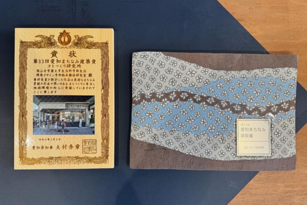 生活環境デザイン学科の学生・大学院生が企画から施工まで深く関わった「コトづくり研究所」が、地域の景観づくりに優れた建物として高く評価され、「愛知まちなみ建築賞」を受賞しました。講評では、学生が企画・設計・施工の中心を担った点も高く評価されました。