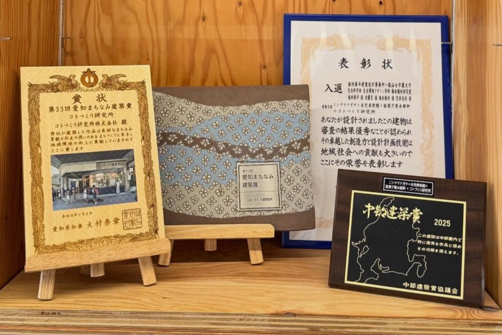 「コトづくり研究所」は、地域にあるまちなみの特徴をていねいに生かしながら、さまざまな活動(コト)が生まれる場として設計されました。完成に至るまでの取り組みや学生の関わり方が高く評価されました。同プロジェクトは第57回中部建築賞・入選も受賞しており、著名な権威ある賞のW受賞となりました。