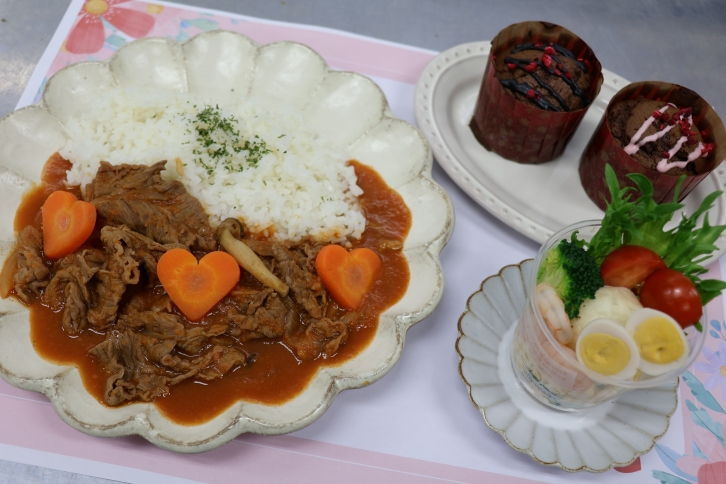 「つくって楽しい!食べて幸せ!バレンタインごはん」をテーマに、ハヤシライス、サラダパフェ、チョコレートマフィンの3品に挑戦しました。