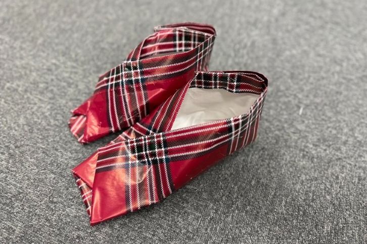 「ルームシューズ作り」では、身近な包装紙や新聞紙を使ってシューズを制作。災害時にも役立つ工夫を取り入れ、楽しさと実用性を兼ね備えた内容となりました。