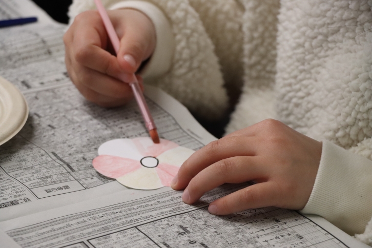 学生が身近なアップサイクルを考えて化粧品にフォーカスした「化粧品を絵の具に!?」では、使わなくなった化粧品が絵の具になってみんなで描いた花を一つのブーケにしました。