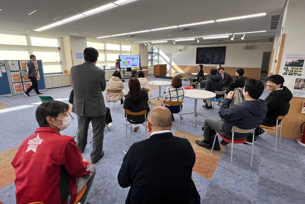 当日は、NTTデータCSの担当者によるプレゼンテーションおよび実証実験が実施されました。これを受け、豊田市役所の複数部署および関連施設、三井物産株式会社、そして本学が参加し、多角的な視点から実装可能性について検討が行われました。外国人労働者の増加やインバウンド拡大を背景に、自治体における「言語の壁」への対応は喫緊の課題となっています。本技術を活用した具体的な応用可能性について、産官学それぞれの立場から実践的な意見が交わされ、活発な議論が展開されました。