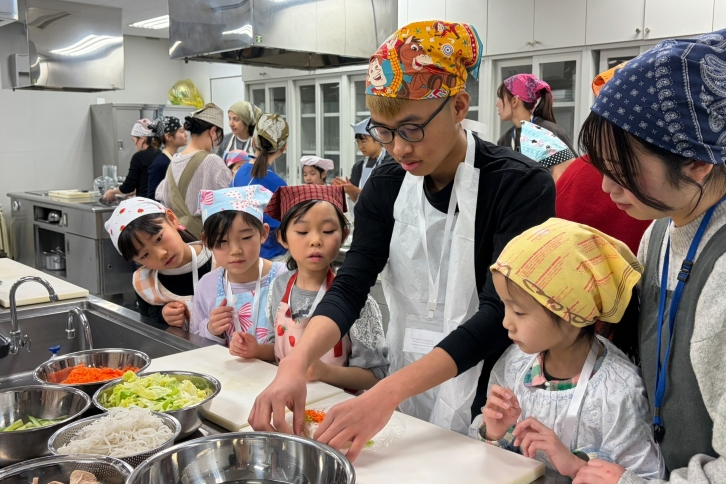 7か国の料理づくりを通して、留学生と小学生が交流する「異文化体験イベント」を本学の学生が企画・運営しました。食・語学・国際交流の専門性を生かし、五感で味わう文化体験を実現!学部の専門性を活かした主体的な挑戦の取り組みとなりました。
