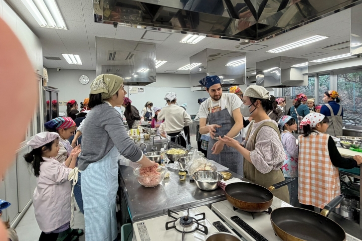 学生たちは、日本語学校との交渉や近隣小学校への案内を数ヶ月前から開始。留学生の招聘やコミュニケーションのサポートには、外国語学部 水島和則教授とゼミ生たちが、試食会によるレシピ確認やアレルギー対策の徹底、安全な調理環境の構築には生活科学部管理栄養学科の三田有紀子講師の指導や協力のもと準備を進めてきました。また、運営には体験学習のプロ『miraitlab(ミライトラボ)』の渡辺貴大代表の全面的なバックアップも得ることができました。
