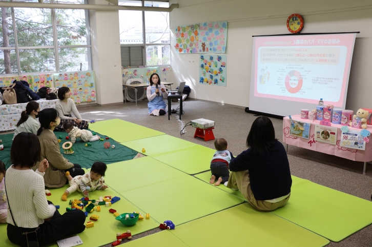2月18日(水)、すぎぱーくで2月の子育て講座を開催しました。今回は、江崎グリコ株式会社の管理栄養士・子供心理カウンセラーである竹田加奈子氏を講師に迎え、「1歳からの子育てのコツ」としてイヤイヤ期の対応や子どもの気持ちに寄り添った育児のヒントを学びました。