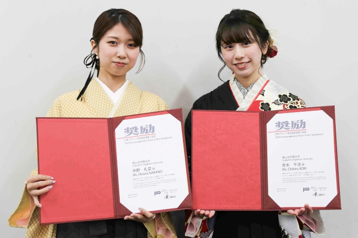 生活環境デザイン学科 滝本成人研究室4年生の青木千洸さん(右)と中野礼菜さん(左)が「日本デザイン学会奨励賞 第3支部」を受賞しました。