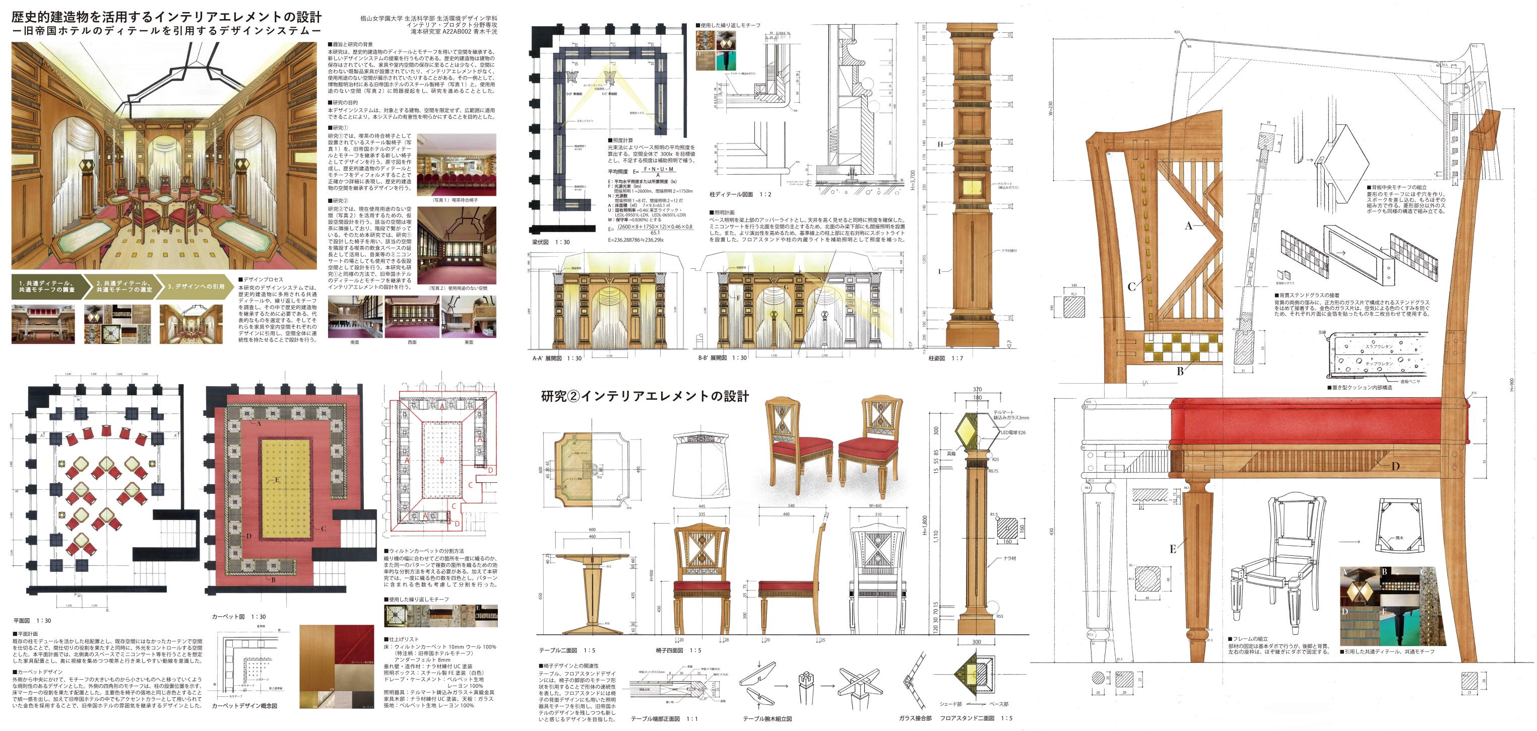 青木さんの卒業制作のタイトルは「歴史的な建造物を活用するインテリアエレメントの設計 ~旧帝国ホテルのディテールを引用するデザインシステム~」。