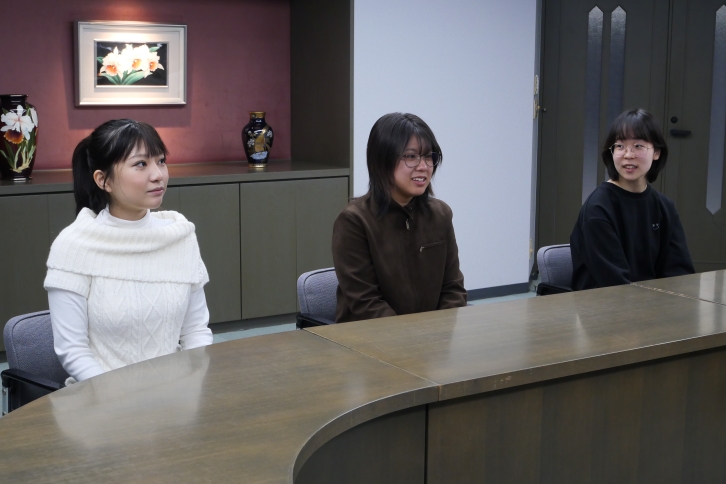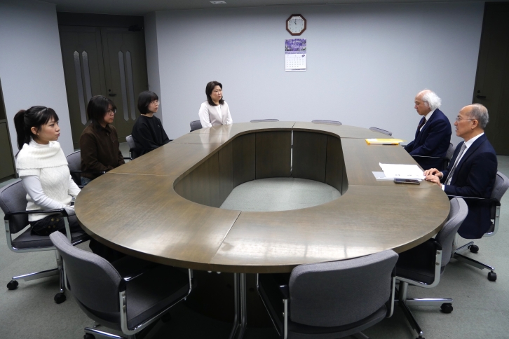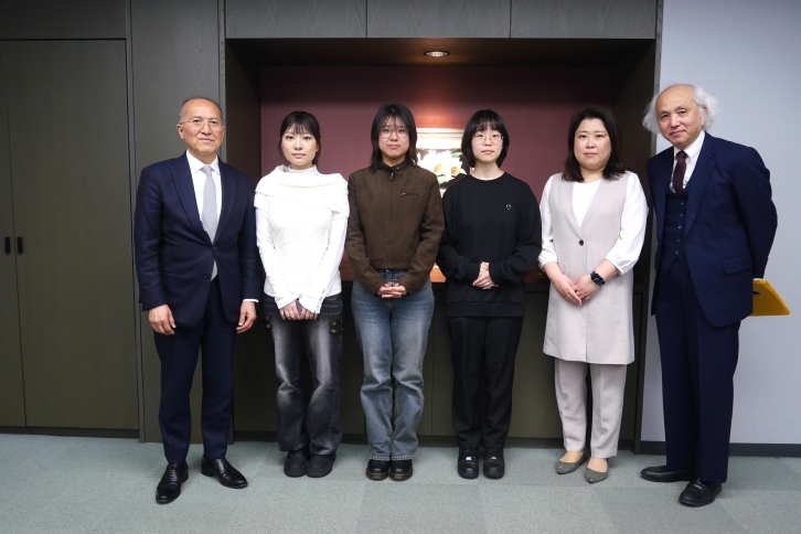 4月1日(水)、本学での留学を開始する3名の交換留学生が、国際交流センター長および留学生教育コーディネーターとともに、黒田由彦学長を表敬訪問しました。