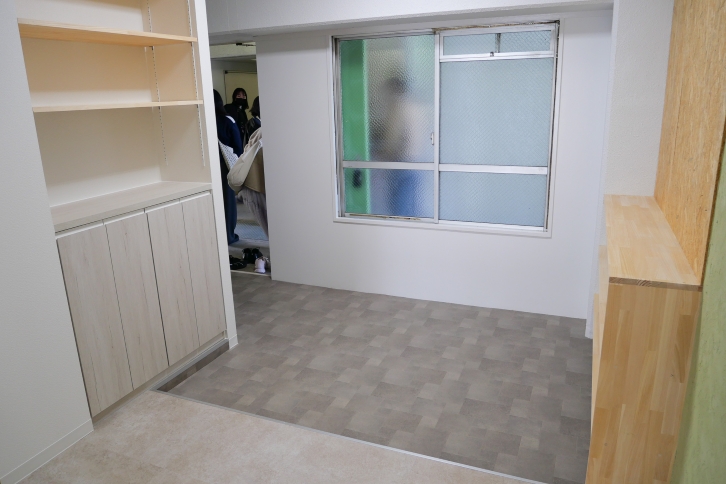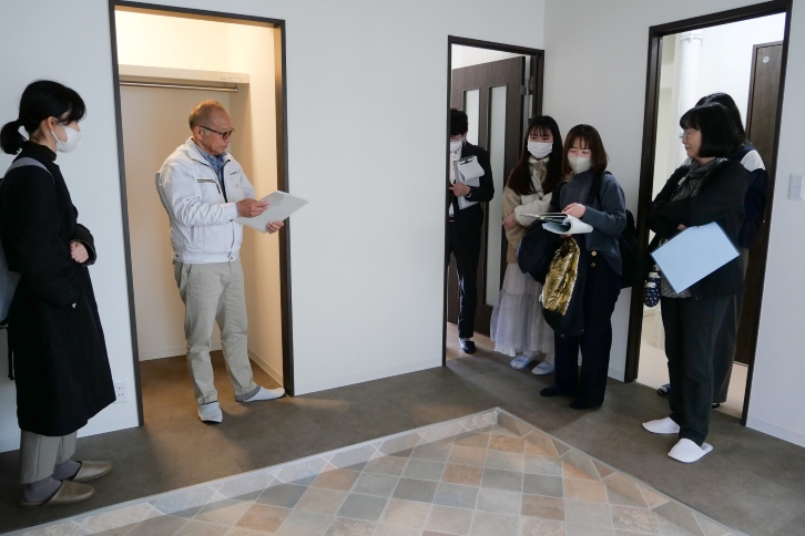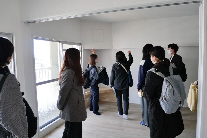 ・生活環境デザイン学科の学生が愛知県住宅供給公社と連携した「団地リノベーション」が完成し、施工を体験した住戸の見学を行いました。