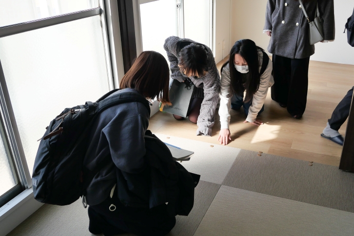 見学会では学生のアイデア以外にも、限られた空間・予算で魅力的な居住空間を作るプロのさまざまな創意工夫を実際に体験することができ、学生にとって貴重な機会となりました。