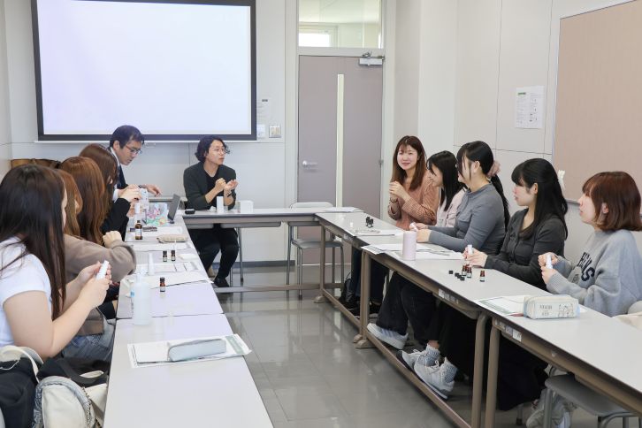 学生からは「原料によって精油の価格が大きく変わることに驚いた」「自分で作る体験の楽しさが付加価値になると実感した」などの感想があがりました。