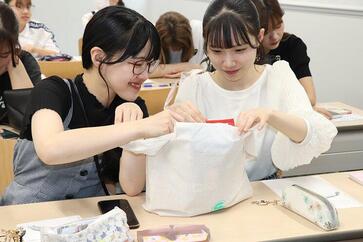 学生たちは、実際の商品を手に取りながらサービスのイメージをふくらませ、利益と社会性を両立させる考え方や、個人でできる取り組みなど、幅広く質問をしました。